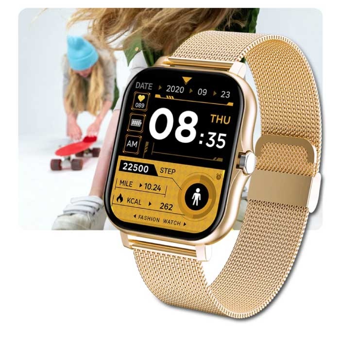 1.69 "Smartwatch Smartband Fitness Sportowy zegarek do śledzenia aktywności IP67 iOS iPhone Android Silikonowy pasek Złoty