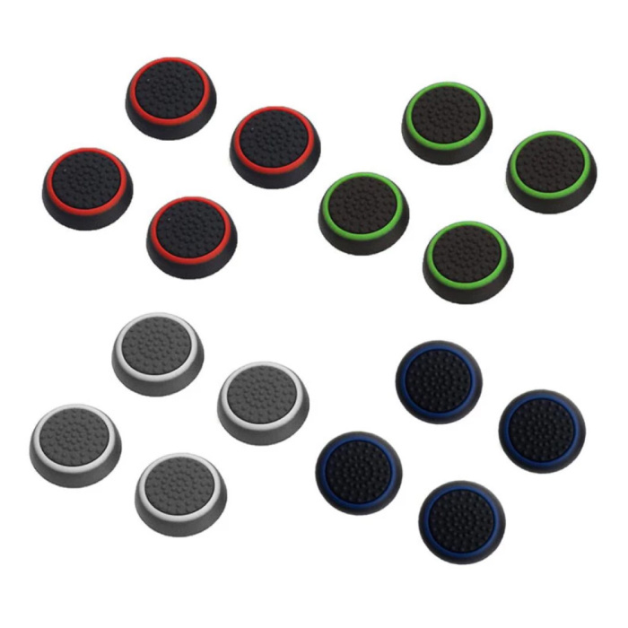 Opakowanie zawiera dwa zestawy uchwytów kciukowych, dzięki czemu możesz w pełni wyposażyć dwa kontrolery w uchwyty. Ten zestaw jest kompatybilny z kontrolerami PlayStation 3, PlayStation 4, Xbox 360 i Xbox One.