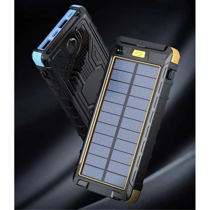 Poręczna przenośna ładowarka, którą można ładować energią słoneczną. Idealny w podróży lub na kempingu! Dzięki powerbankowi zapobiegasz wyczerpaniu się baterii smartfona i nie jesteś już dostępny w połowie dnia.