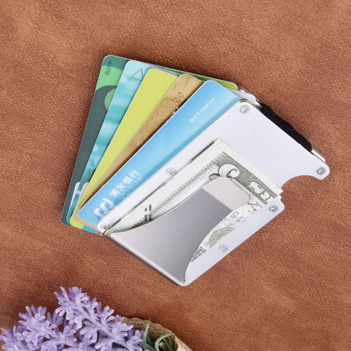 Solidna aluminiowa obudowa chroni karty przed uszkodzeniem i zużyciem, a z tyłu znajduje się poręczny klips na gotówkę. Portfel na karty jest łatwy w użyciu, a karty pozostają na swoim miejscu.