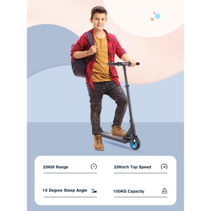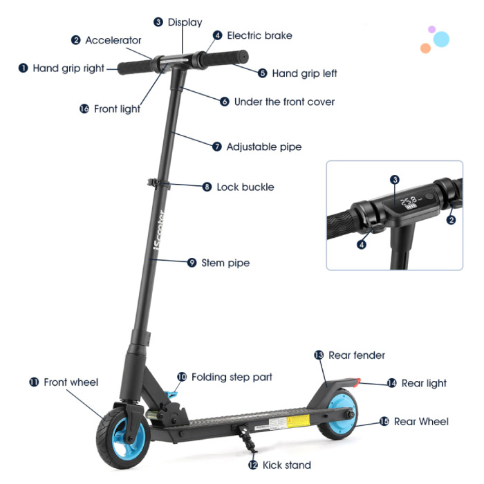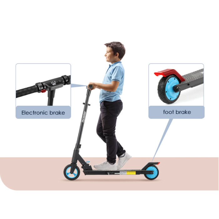 Hulajnoga elektryczna iScooter 350W jest przeznaczona do długich dystansów i dużych prędkości, skuter doskonale nadaje się dla dzieci w wieku od 6 do 14 lat przy maksymalnym obciążeniu do 90 kg.