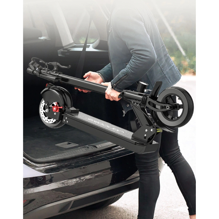Istnieje tryb eco, który ogranicza skuter do 25 km / h, dzięki czemu bateria jest bardziej ekonomiczna i możesz jeździć znacznie dłużej. Jednym z głównych punktów sprzedaży skutera jest jego kompaktowy rozmiar i możliwość składania: z łatwością można go zabrać do pracy, wsiąść do autobusu lub pociągu, do biura itp.