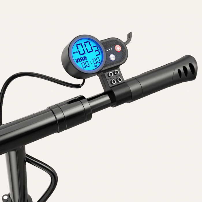 Nowa technologia jest solidnie wykonana; z amortyzatorami i podwójnym hamulcem tarczowym z przodu iz tyłu, dzięki czemu hulajnoga nadaje się do jazdy w każdym trudnym terenie. Nawiasem mówiąc, na kierownicy znajduje się poręczny panel sterowania z miernikiem prędkości i akumulatora, wieloma biegami i portem USB do ładowania smartfona podczas jazdy!