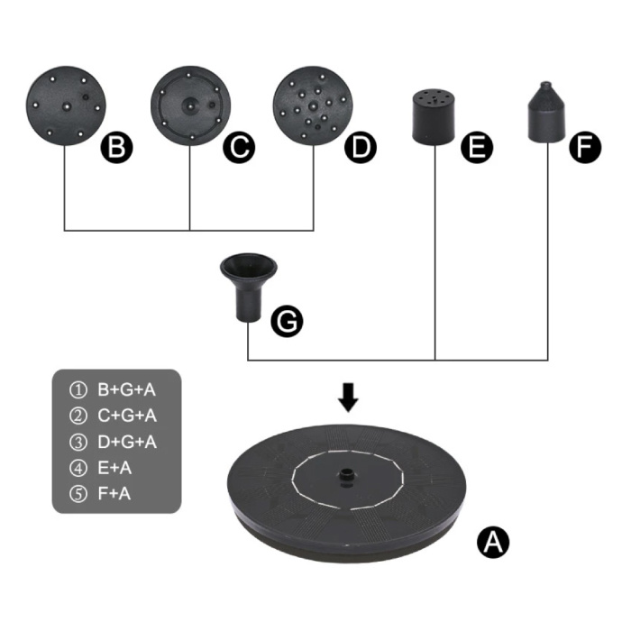 Ten model jest wyposażony w 6 nasadek i łącznie 5 kombinacji natrysków, dzięki czemu możesz wybrać sposób natryskiwania fontanny. Im więcej światła słonecznego, tym lepszy efekt różnych przywiązań.