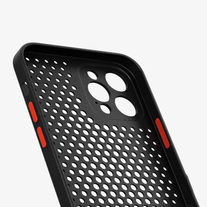 Dzięki temu niezwykle ochronnemu twardemu etui absorpcyjnemu Twój iPhone jest bezpieczniejszy niż kiedykolwiek! Etui posiada małe otwory na całej powierzchni, dzięki czemu iPhone może dalej chłodzić w ciepłych warunkach.