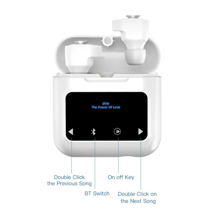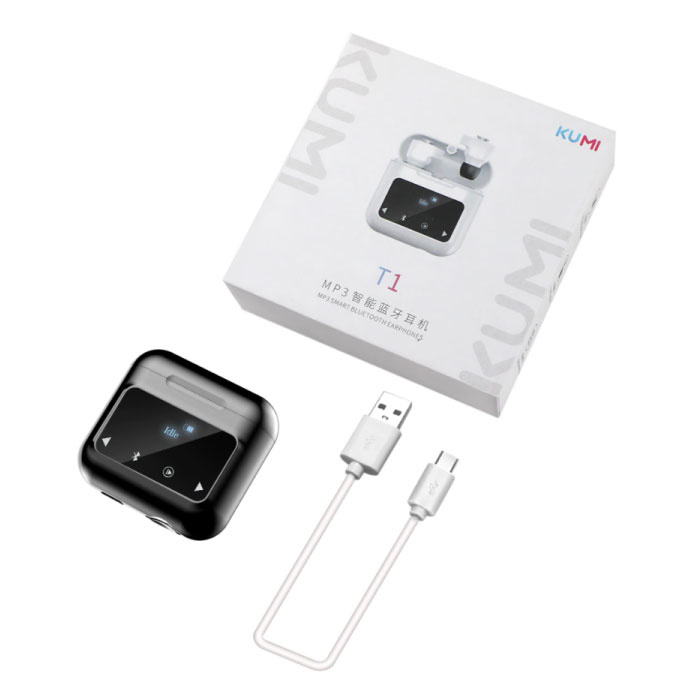 Z zestawem 3 w 1 Kumi K1 otrzymujesz piękne bezprzewodowe słuchawki Bluetooth, odtwarzacz muzyki i power bank do słuchawek w jednym! Pudełko zawiera komorę ładującą bezprzewodowe słuchawki douszne, ale działa również jako power bank do telefonu i jako odtwarzacz multimedialny. Box posiada dotykowy ekran do wyboru muzyki i multimediów oraz do podłączenia Bluetooth.