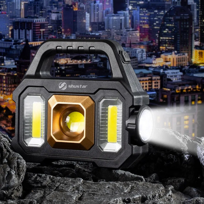 Opcje podwójnego oświetlenia: Latarka jest wyposażona w lampę przednią o dużym zasięgu do bezpośredniego oświetlenia i lampę boczną do nastrojowego oświetlenia otoczenia. W ten sposób możesz łatwo przełączać się między ukierunkowanym skupieniem a szerszym światłem.