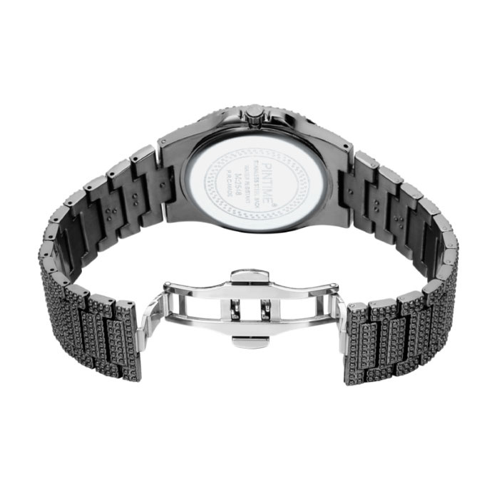 Ten luksusowy zegarek PINTIME jest wykonany ze stali nierdzewnej i ma wzór „Full Diamond” z małymi sztucznymi diamentami rozsianymi po całym zegarku. Każdy szczegół zegarka został starannie dopracowany, dzięki czemu projekt nabiera własnego charakteru.