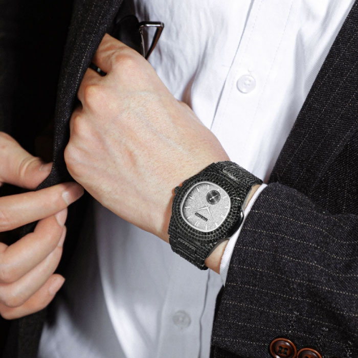 Luksusowy zegarek z pełnym diamentem dla mężczyzn - mechanizm kwarcowy ze stali nierdzewnej ze schowkiem w kolorze czarnym