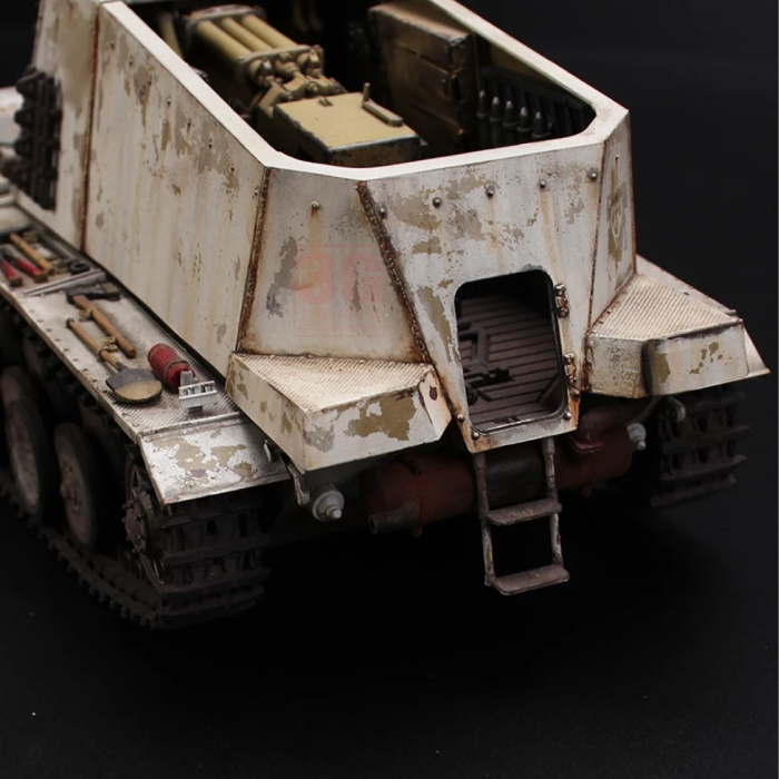 Każda część makiety została wykonana z najwyższą precyzją, co jest pięknem dla kolekcjonerów. Ten szczegółowy projekt jest doskonałym odwzorowaniem niemieckiej „gepanzerte Selbstfahrlafette”.