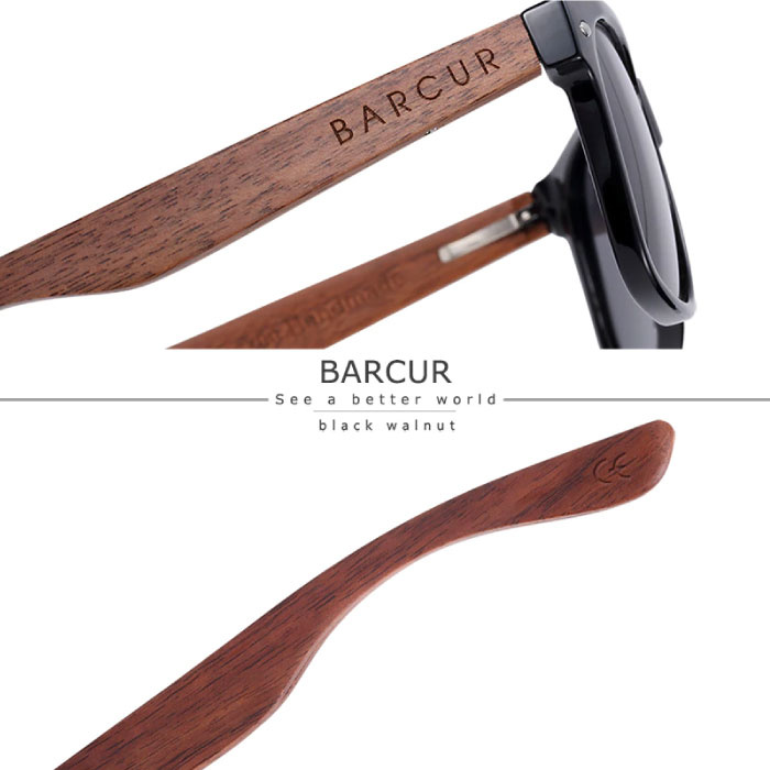 Okulary przeciwsłoneczne Barcur mają bardzo solidną oprawkę i miękkie końcówki ułatwiające noszenie. Oprawka jest wykonana ze specjalnego stopu orzecha, który sprawia, że okulary są nie tylko lekkie jak piórko, ale także bardzo wytrzymałe.