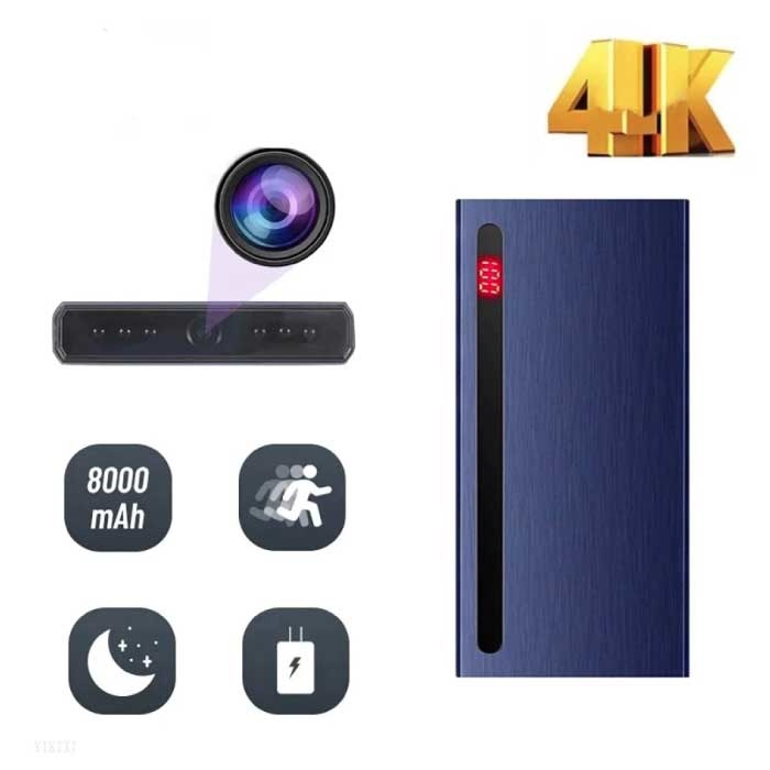 Power Bank Mini kamera bezpieczeństwa 8000 mAh - Kamera 4K Wykrywanie ruchu Night Vision Czarny