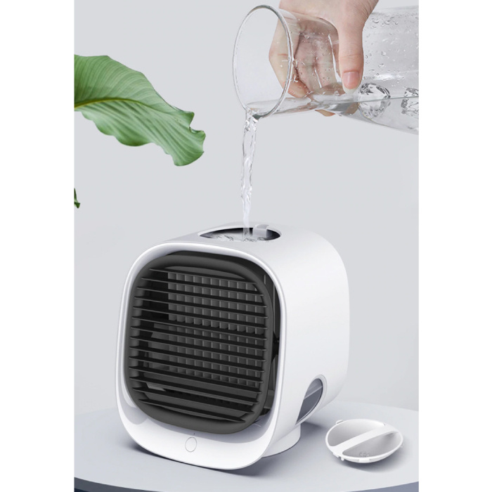 Ciesz się idealnymi warunkami w każdym pomieszczeniu w domu dzięki mini klimatyzatorowi. Połącz wydajność i elegancję, aby zachować chłód w gorące letnie dni. Chłodnica powietrza zasysa ciepłe i suche powietrze i zwraca chłodne i wilgotne powietrze.