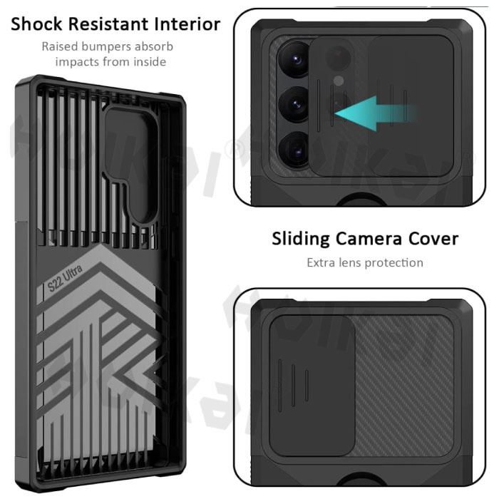 Samsung Galaxy S22 Ultra - Etui na kartę z podstawką i wysuwaną kamerą - Grip Socket Magnetyczne etui czarne