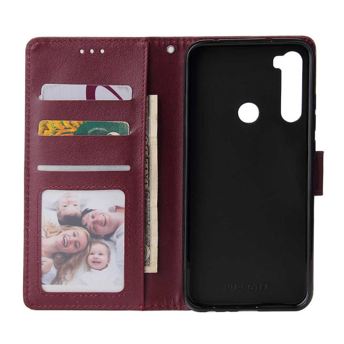 Skórzany portfel z klapką Xiaomi Redmi 8 - Portfel ze skóry PU Pokrowiec Cas Case Bordeaux