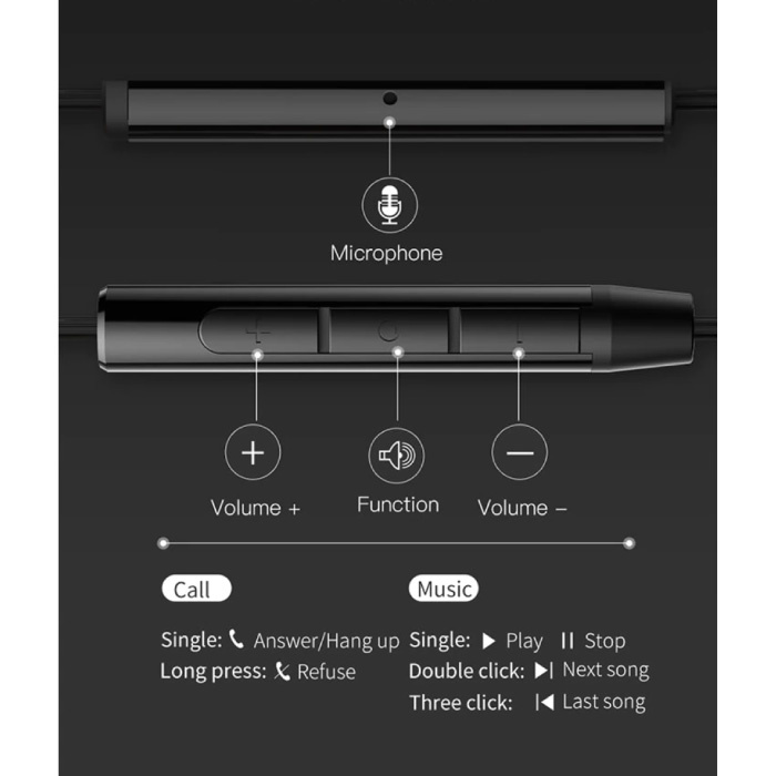 Dzięki wbudowanemu mikrofonowi i pilotowi możesz łatwo sterować muzyką, nagrywać i rozłączać rozmowy telefoniczne lub regulować głośność. Przy minimalnych stratach dźwięku i maksymalnej wydajności dźwięku zapewniają doskonały dźwięk z niskim basem i wysokimi, czystymi tonami.