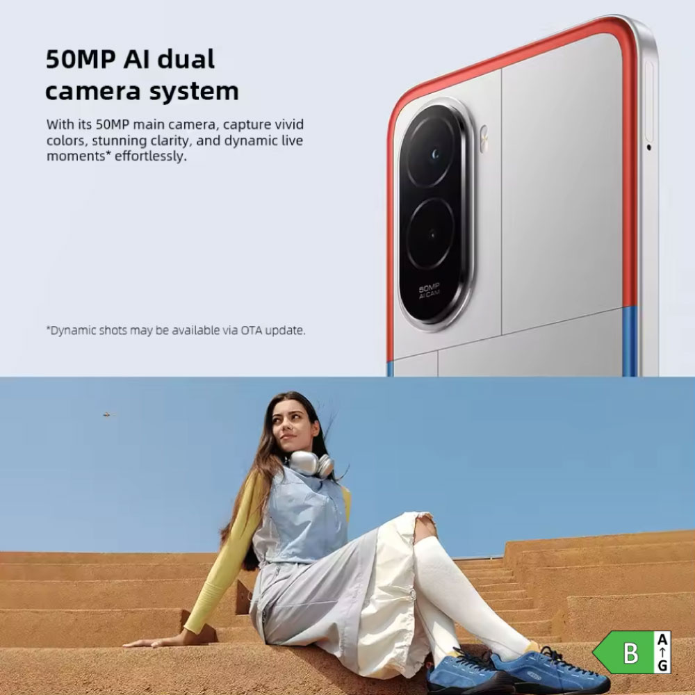 Uchwyć każdą chwilę z oszałamiającą ostrością dzięki podwójnemu aparatowi AI o rozdzielczości 50 MP . Dzięki inteligentnej optymalizacji AI możesz bez wysiłku robić wyraźne i szczegółowe zdjęcia, zarówno w ciągu dnia, jak i przy słabym oświetleniu.