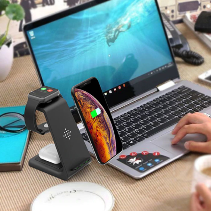 Stacja ładująca 3 w 1 do Apple iPhone / iWatch / AirPods - Stacja ładująca 18W Wireless Pad Czarna