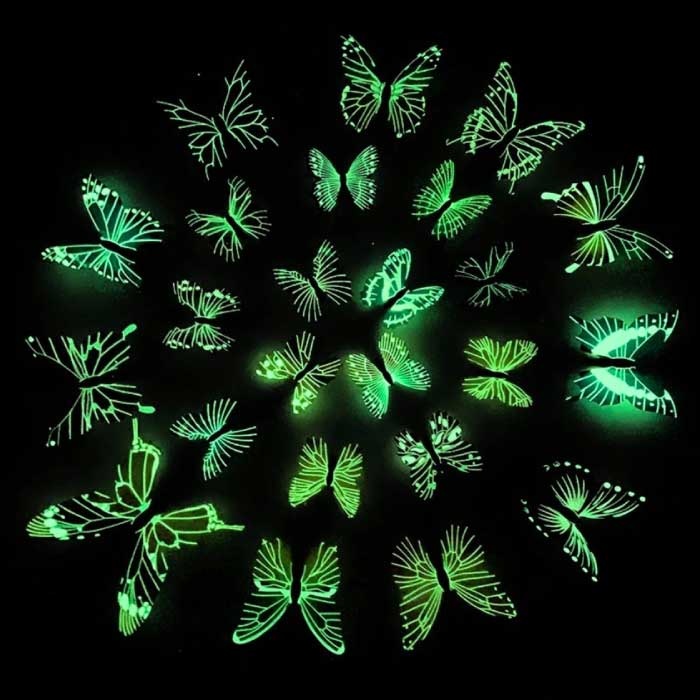 Świecące w ciemności Motyle - 12 sztuk - Świecące Naklejki Ścienne Dekoracje Kolor Mix