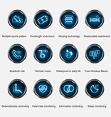 Używasz różnych liczników, mierników i trackerów do działań; pulsometr, ciśnieniomierz, kroki / krokomierz, ... Możesz także sprawdzić powiadomienia i wiadomości ze swojego smartfona.