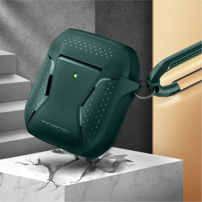 Wstrząsoodporne etui na słuchawki AirPods 1/2 z karabińczykiem - skórka na etui AirPod - zielone