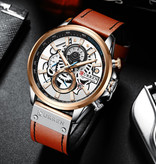 Zegarek Anologue - skórzany pasek Luksusowy mechanizm kwarcowy dla mężczyzn - Stal nierdzewna - Pomarańczowo-srebrny
